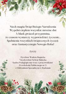 Świąteczne Życzenia Galeria zdjęć Powiązane wiadomości KICIA KOCIA - czytelnicze przygody dla dzieci... Za nami już IV edycjia akcji społeczno-charytatywnej... Jasełka 2024 Świąteczne Życzenia Kartka dla pacjenta Ach będzie bal !!! Drukuj Udostępnij Data dodania: 21.12.2024 Wyświetlono: 73 Aktualności