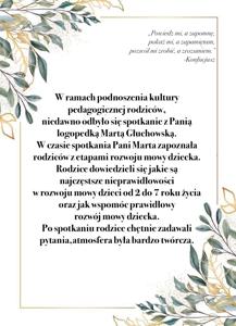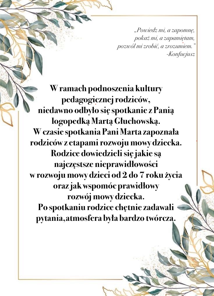 Spotkanie z logopedą Galeria zdjęć Powiązane wiadomości Ach będzie bal !!! Życzenia dla Babci i Dziadka Zbiórka dla schroniska Spotkanie z logopedą Kwiatek dla przedszkola Międzynarodowy Dzień Szczęścia Drukuj Udostępnij Data dodania: 22.02.2025 Wyświetlono: 59 Aktualności