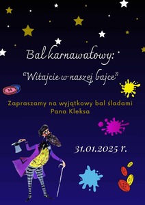 2025-01-31 od: 09:30 do 12:00 Uroczystości Bal karnawałowy Bal karnawałowy „Witajcie w naszej bajce” to fantastyczne wydarzenie, które przeniesie dzieci do świata pełnego magii, baśni i kolorów. Czego się będziemożna spodziewać? - Wystroju... Czytaj więcej